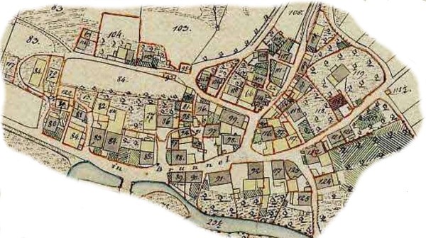 Um zur Beschreibung der einzelnen Häuser zu wechseln, nutzen Sie bitte die Links unter dem Bild. Bei den Links, die "blau" unterlegt sind, sind weitere Daten oder Bilder vorhanden.